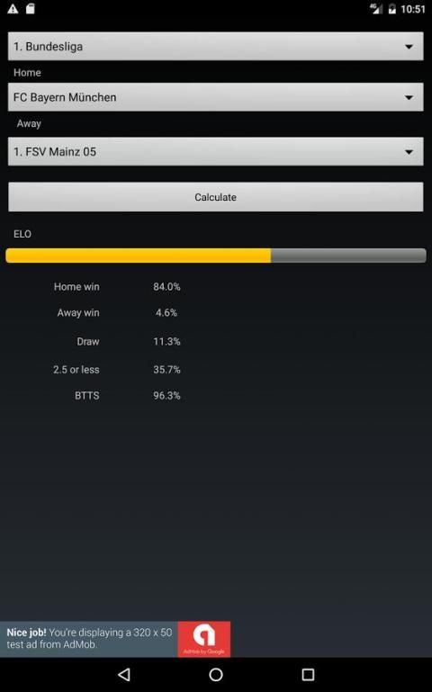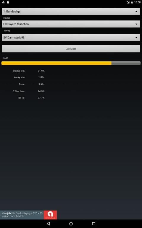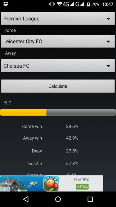 इस एप्लिकेशन को आप फुटबॉल परिणाम की भविष्यवाणी करने के लिए सबसे अच्छा मौका देने के लिए 2 भविष्यवाणी मॉडल का उपयोग करता है।