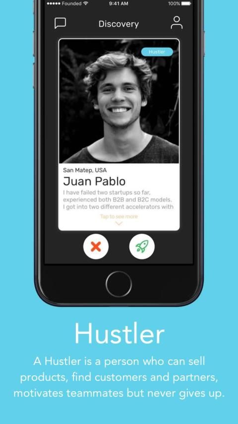 Founded is a matchmaking app that helps entrepreneurs to take the first step of building a startup; finding the right team.