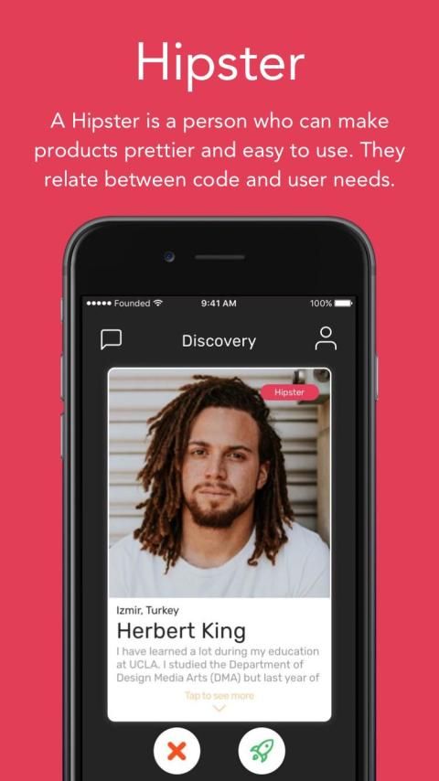 Everybody has a different characteristic of talent and startups need three of it. A hacker, a hipster, and a hustler! We help you to find these talents just a few swipes without hassle. Let's meet them:
