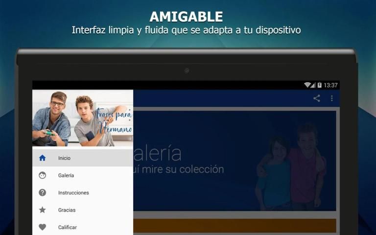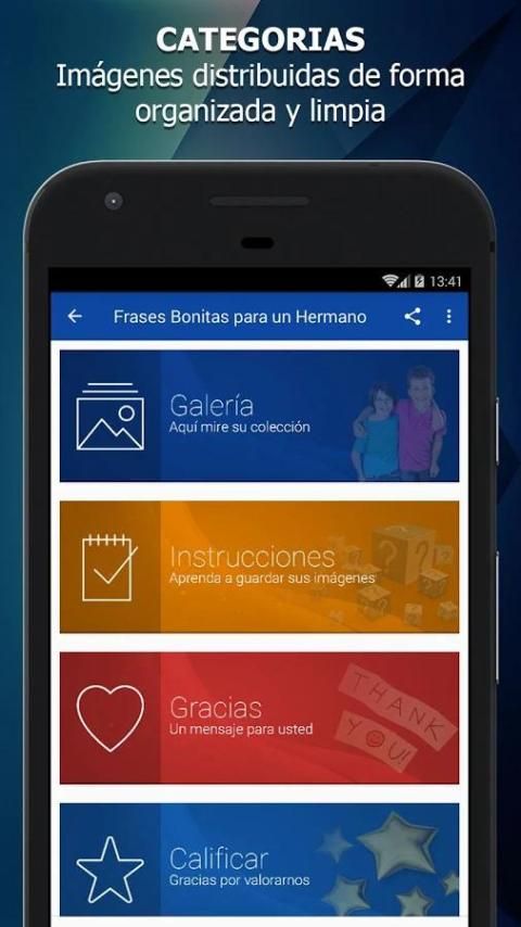 हमारे एप्लिकेशन ताकि आप हमेशा अपने चित्रों को सीमाओं के बिना उपलब्ध हैं, मेरे भाई के लिए कई सुंदर वाक्यांशों प्रदान करता है और सभी का सबसे अच्छा, तुम सच में अपने डिवाइस इंटरनेट नहीं है, भले ही कर सकते हैं।