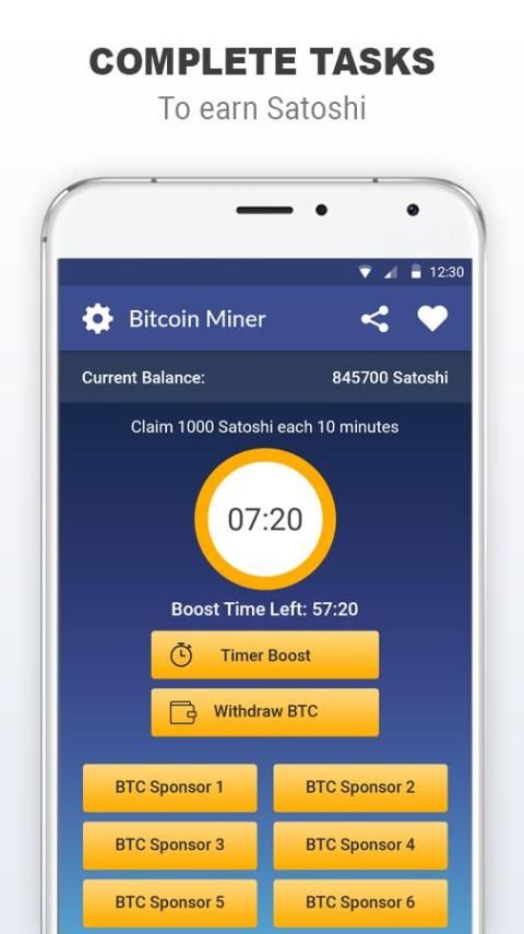 - भागो एप्लिकेशन नियमित रूप से और मेरा टाइमर बटन के साथ Bitcoin