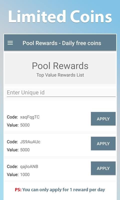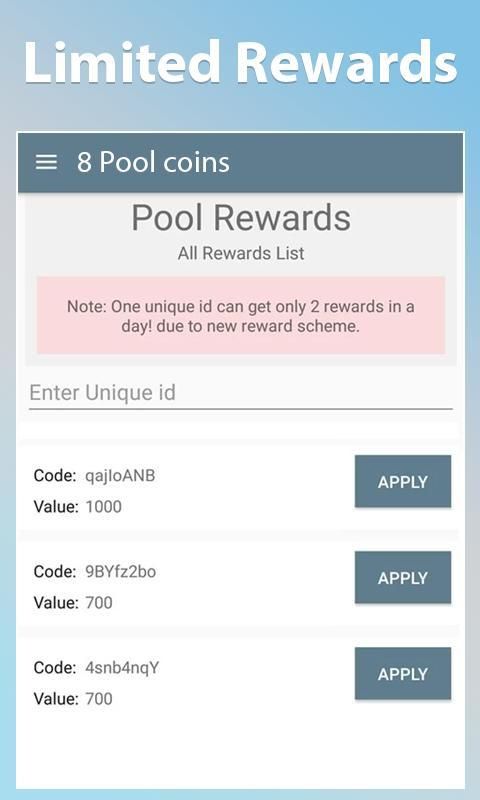 • आसान प्रक्रिया 8 पूल सिक्के प्राप्त करने के लिए
