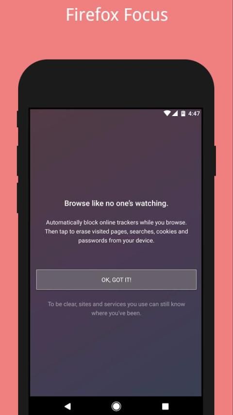 + मुफ्त फ़ायरफ़ॉक्स फोकस निजी ब्राउजर हेल्पर शिक्षण आसानी से आपका इतिहास मिटा देता है - कोई पासवर्ड नहीं, कोई कुकी नहीं, कोई ट्रैकर नहीं