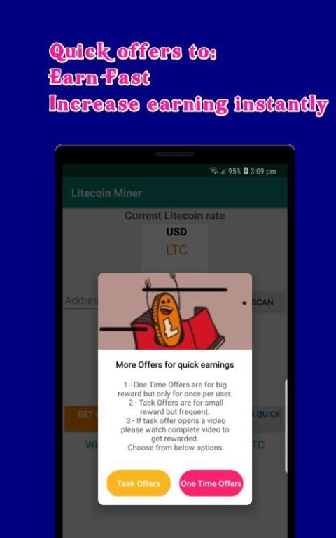प्रक्रिया इस एप्लिकेशन पर मुफ्त Litecoins कमाने के लिए।
