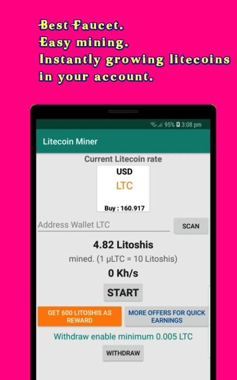 यह Litecoin खनन एप्लिकेशन आपके डिवाइस पर खनन प्रक्रिया को स्वचालित।
