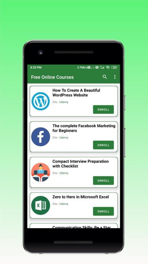 All the courses listed in this app from Udemy or any other site may be available free for only a limited period of time. So keep checking the app for new and latest courses.