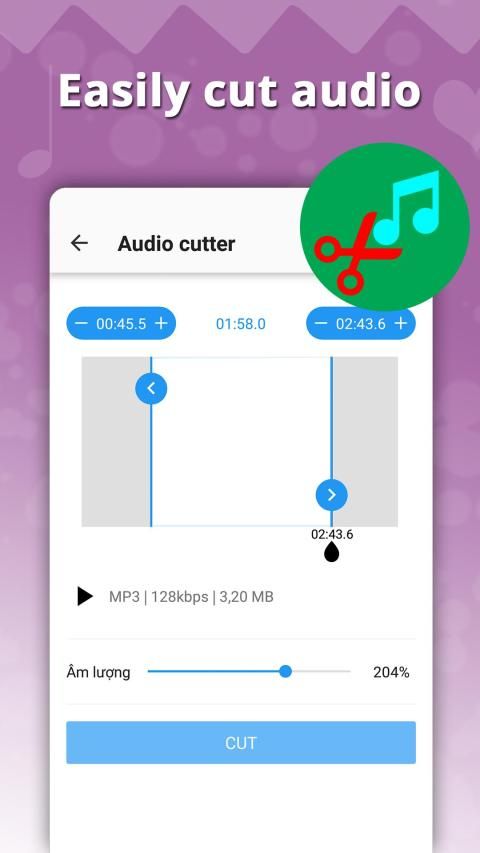 With MP3 cutter & ringtone maker, you can easily cut music, edit music, trim music, merge music and mix music to create the best ringtone for each of your contacts. The application supports cutting music to the smallest and most accurate piece of music to help you create classic ringtones for each of your contacts. Especially, the application also supports you to adjust the volume to make the sound stand out more than ever.