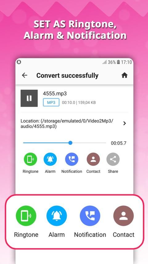 रिंगटोन, अलार्म, अधिसूचना के रूप में सेट करें