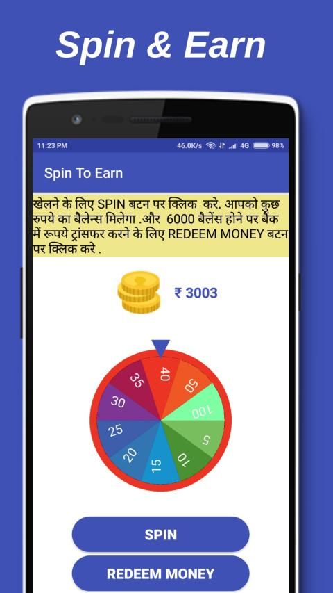 Click on spin button to spin lucky draw wheel. Afetr click you win any random rupees So, Spin more & Earn more.
