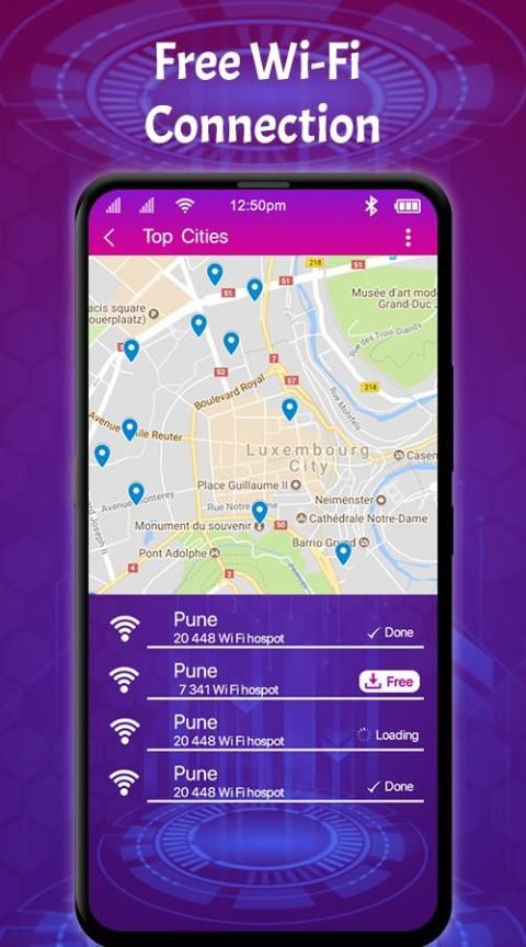Free WIFI Connection Any where provides billions shared WIFI password covering every corner of the world. Based on your location Will show WIFI hotspot on Map and Analyzer free WIFI Free Connection help to find free WIFI connect without password smartly choose shared WIFI hotspot for you for free WIFI calling with WIFI connector. All the Free WIFI Connection Download and passwords are shared by the user initiative, and through intelligent testing to ensure available.
