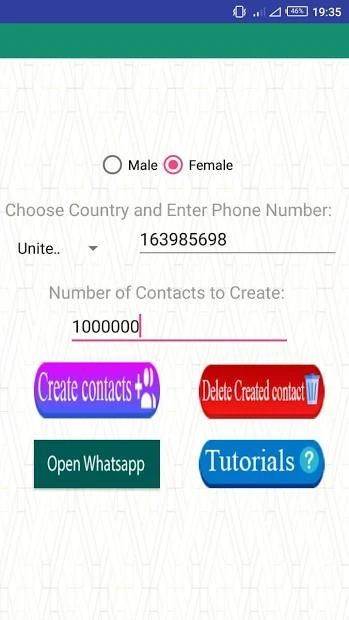 देश कोड के साथ संख्या दर्ज करें और संपर्क बनाने के लिए गिनती सेट करें। जैसा कि आप पहले चरण के साथ खत्म करते हैं, केवल उन संपर्कों में देखें जिन्हें आप अलग-अलग यादृच्छिक फोन संपर्क बनाएंगे। व्हाट्सएप के लिए बस लड़कों और लड़कियों को बस चैट ऐप पर जाएं और एक नया मजा शुरू करें।