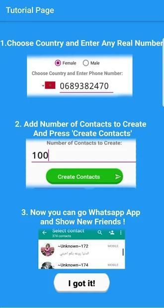 इस एप्लिकेशन के डेवलपर इस एप्लिकेशन के किसी भी अवैध उपयोग के लिए ज़िम्मेदार नहीं है। इस एप्लिकेशन का उपयोग करके अजनबियों को संदेश भेजते समय उपयोगकर्ताओं को सावधानी बरतनी पड़ती है।