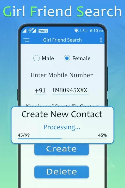Friend Search For WatsApp : GirlFriend Search App is simple tool to generate random Contacts phone to find a boy friend or girl friend on WatsApp application And Other Chat Apps and this app is a great status application having various categories contain like Status in hindi and english languages.