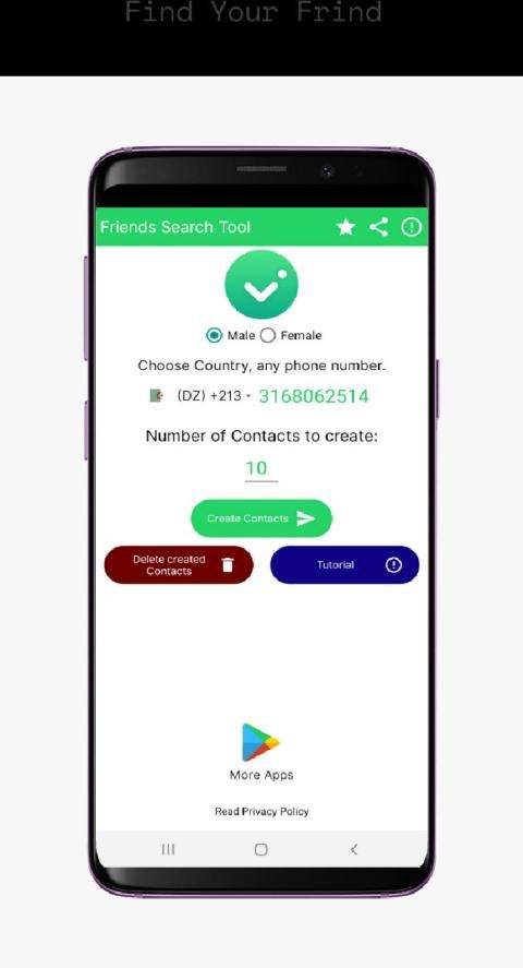 Find Friend Search Tools will help you to find find new friends . though this app you will get random contacts.