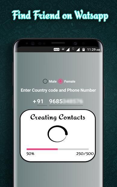 Friend Search For WatsApp : GirlFriend Search App is simple tool to generate random Contacts phone to find a boy friend or girl friend on WatsApp application And Other Chat Apps!