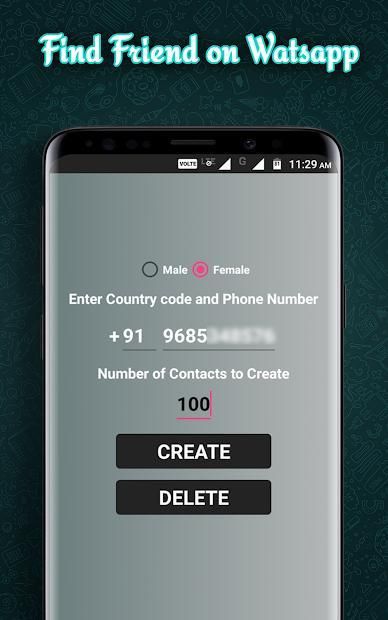 हम इस एप्लिकेशन में केवल यादृच्छिक मोबाइल संपर्क उत्पन्न करते हैं और यह उपयोगकर्ताओं को WatsApp पर और अन्य समान अनुप्रयोगों के लिए भी मिल जाएगा।