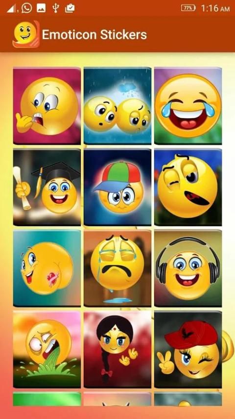 यह प्यारा मुक्त, चालाक है और रंगीन इमोटिकॉन स्टिकर एंड्रॉयड के हर संस्करण के साथ ठीक काम कर रहा