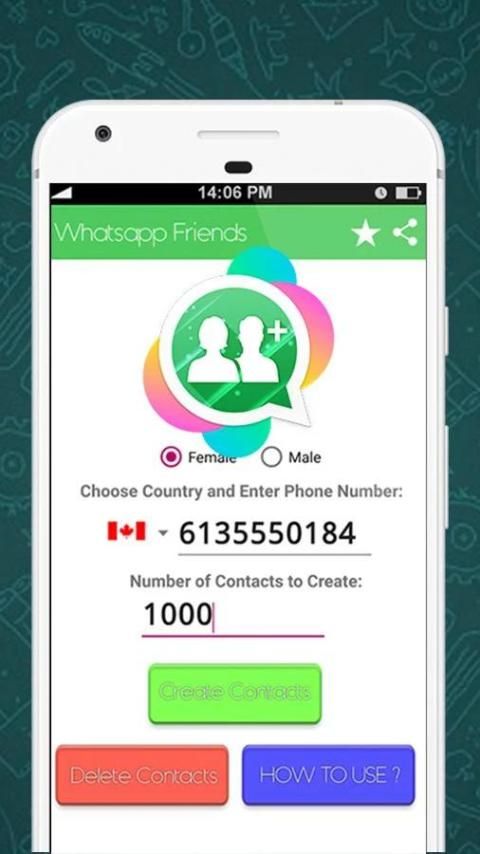 - Generate random whatsapp friends phone contacts.