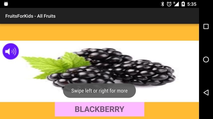 1. Learn All Fruits - Will show all the 100+ fruits one by one on Swipe.