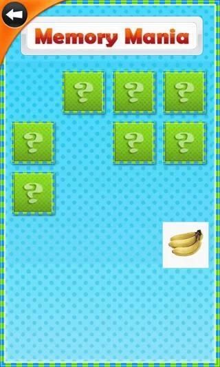 - साथ ही स्मृति कौशल का परीक्षण करने के लिए फल चित्रों के साथ मेमोरी खेल।