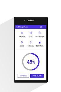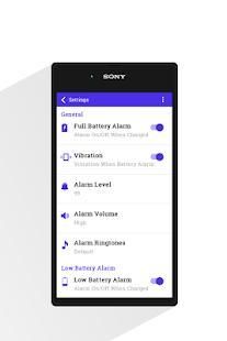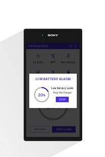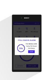 प्रभारी अलार्म जब अपने बैटरी पूरी तरह से चार्ज हो रही है आपको सूचित करने के अलार्म ध्वनि खेलेंगे। यह आपको ऊर्जा बचाने और अपने फोन की बैटरी की रक्षा के लिए मदद मिलेगी। इस एप्लिकेशन का उपयोग करके आप अपनी बैटरी जीवन को बढ़ा सकते हैं।