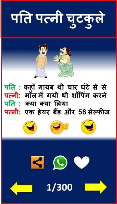 Funny Jokes Status chutkule is an app which provides you funny jokes in hindi. Funny Jokes Status chutkule have one stop collection of latest jokes, status and quotes for fun. You will enjoy many types of jokes status quotes like – Bacho Ke Jokes, Hasya shayri, Bhikhari Jokes, Doctor jokes in hindi, Mjedar jokes in hindi 2016 , Lovers Jokes In Hindi 2016, Pappu Joke In Hindi 2016, Husband Wife Jokes Hindi 2016, Rajnikant Jokes In Hindi 2016, Santa Banta Jokes Hindi 2016 so let’s enjoy together.