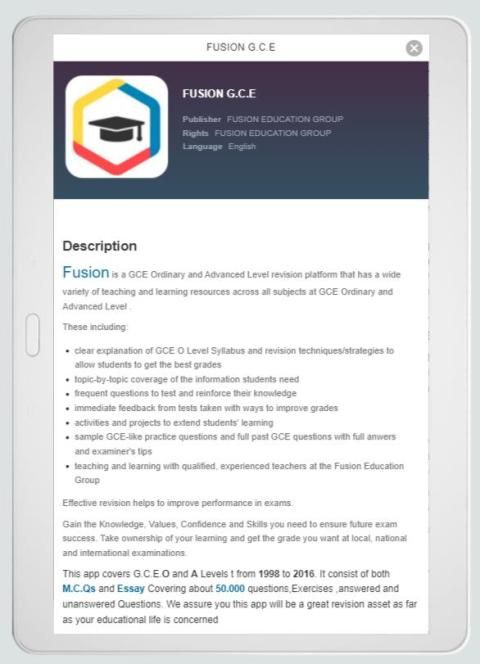 Fusion GCE is a mobile revision application offering Cameroon General Certificate of Education GCE in all subjects Science ,Arts,Commercials,Technical educations from 1998-2018 .