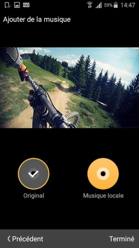 एक संगीत अपने स्मार्टफोन पर उपलब्ध जोड़ने दृश्यों कि आप ब्याज नहीं है के संभावित हटाने,: - आवेदन के माध्यम से अपने वीडियो को संपादित करें। डाउनलोड वीडियो और साझा बटन पर क्लिक करें (नीचे बाएँ और प्रक्रिया का पालन करें)।