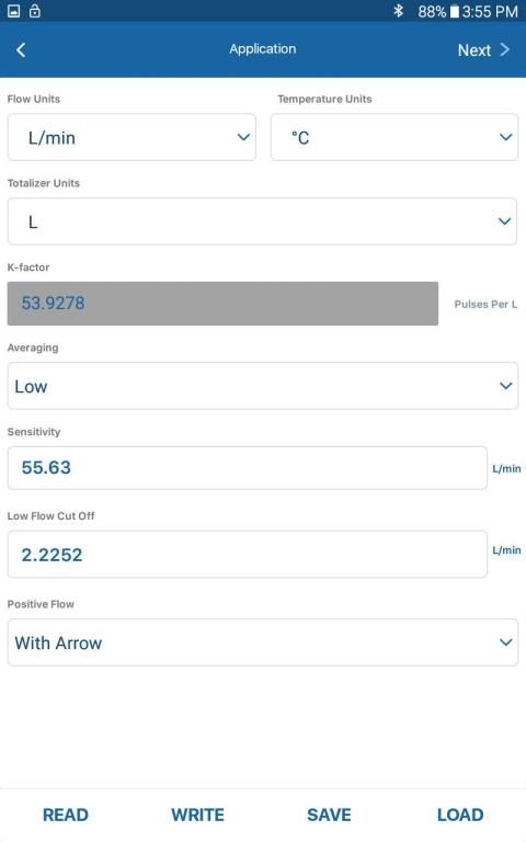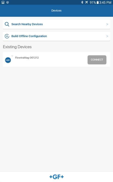 GF Piping Systems Configuration Tool allows users to configure their Signet 2580 FlowtraMag meter to the parameters required for their system. Users can change the averaging, low flow cut off, span the 4 to 20 mA output, and monitor the FlowtraMag on their Android device.