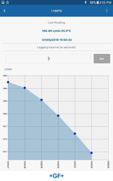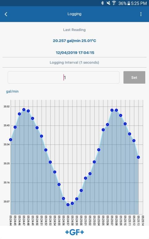 जीएफ पाइपिंग सिस्टम कॉन्फ़िगरेशन टूल उपयोगकर्ताओं को अपने सिगनेट 2580 फ़्लोटरमैग मीटर को अपने सिस्टम के लिए आवश्यक मापदंडों को कॉन्फ़िगर करने की अनुमति देता है। उपयोगकर्ता औसत, निम्न प्रवाह में कटौती को बदल सकते हैं, 4 से 20 एमएए आउटपुट का विस्तार कर सकते हैं, और अपने एंड्रॉइड डिवाइस पर फ़्लोअटरमैग की निगरानी कर सकते हैं।