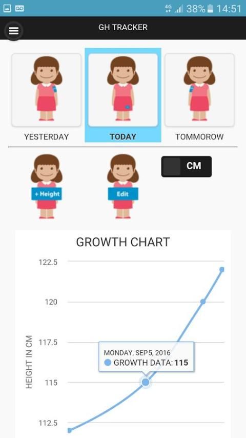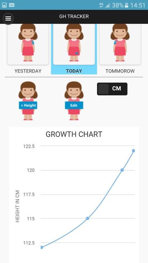 विकास ट्रैकिंग - ऊंचाई दर्ज करें और का ग्राफ देखने कैसे वृद्धि हार्मोन काम कर रहा है