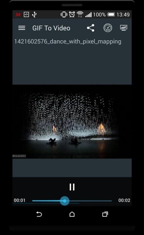 यह एप्लिकेशन WhatsApp या कुछ और के माध्यम से अपने दोस्तों के साथ साझा करने के लिए वीडियो के लिए GIF एनिमेशन कन्वर्ट करने के लिए प्रयोग किया जाता है। सफल होने के बाद आप अपने दोस्तों के साथ सीधे नव निर्मित वीडियो साझा कर सकते हैं परिवर्तित। परिवर्तित वीडियो में एक वॉटरमार्क नहीं होगा। आप वॉटरमार्क निकालना चाहते हैं तो आप थोड़े से पैसे के लिए ऐसा कर सकते हैं।
