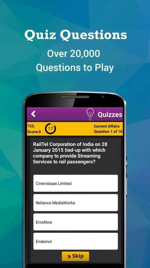 • करंट अफेयर्स, इतिहास, राजनीति, क्रिकेट, हॉलीवुड, बॉलीवुड और आदि जैसे विभिन्न श्रेणियों के लिए सामान्य ज्ञान क्विज
