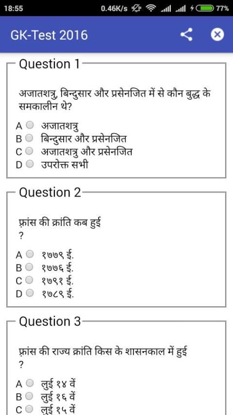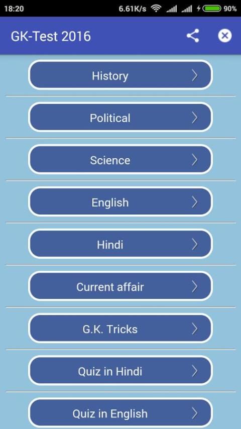 जीके परीक्षा 2016 शुरुआत और अग्रिम स्तर के लिए बहुत उपयोगी अनुप्रयोग है।