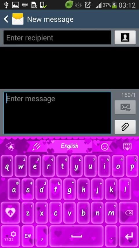 कीबोर्ड से प्रेस लंबे "? 123" कुंजी. प्रेस "उन्नत सेटिंग". प्रेस "फ़ॉन्ट सेटिंग्स". प्रेस "स्कैन फोंट". प्रेस "का चयन करें फ़ॉन्ट" (अब उस पर जाने कीबोर्ड बैंगनी hearts विषय है कि फ़ॉन्ट का चयन).