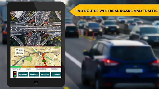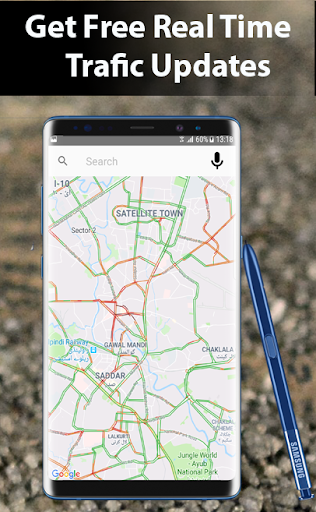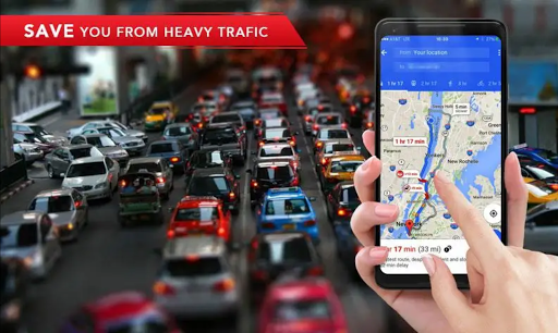 # जीपीएस मार्ग खोजक के साथ शहर में लाइव ट्रैफिक की स्थिति पर नज़र रखें।