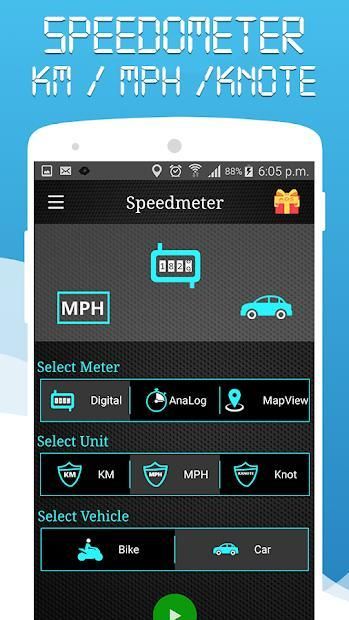 features a fully functional speedometer with both analogs as well as digital speed display and Google Maps Views. Analog meter shows speed just like your cars, Bikes, Bicycle, Trucks speedometer using a dial and a needle. Digital speedometer will show current speed in digits.