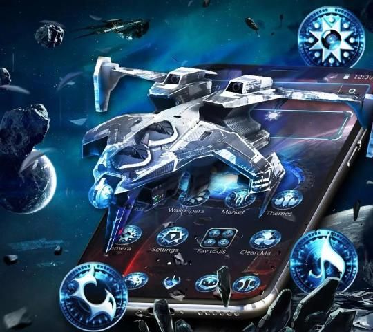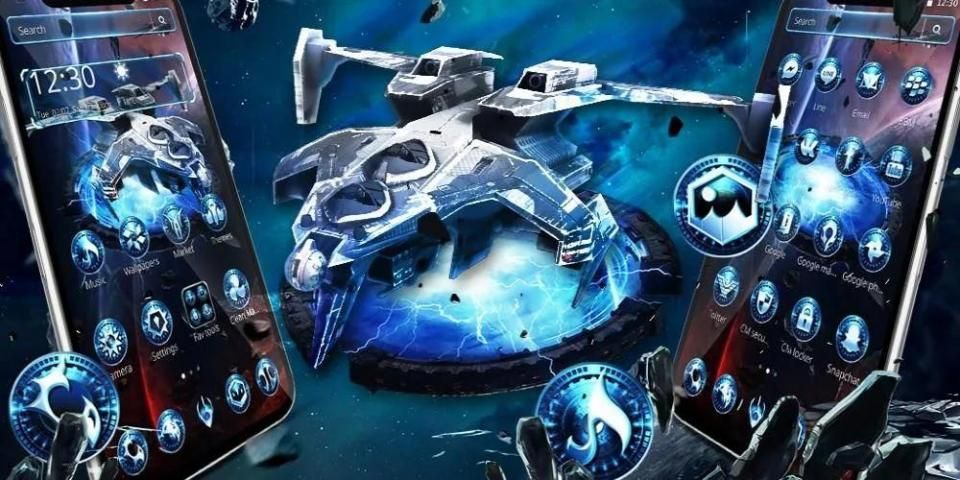 नवीनतम मुफ्त गैलेक्सी स्पेसक्राफ्ट थीम आपको ब्लू और टेक शैली का बेहतर संचालन अनुभव प्रदान करती है!