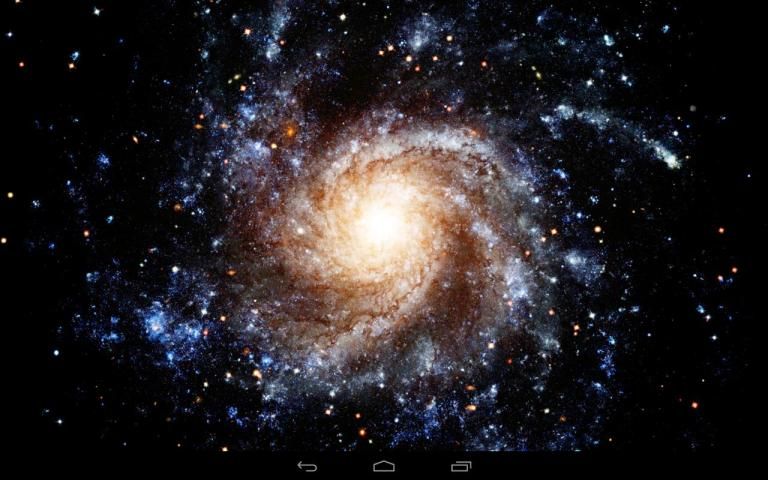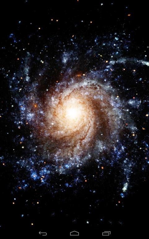 Explore the universe and admire the beauty of distant galaxies located millions of light-years from the Sun. "Galaxy Wallpaper" is a real time visualization of giant spiral disk of stars, dust and glowing gases. See the exceptionally colorful galaxy as it's slowly rotates on your screen. Touch the screen to change the perspective and watch the galaxy from different angles. See hundreds of stars orbiting around the galaxy core.