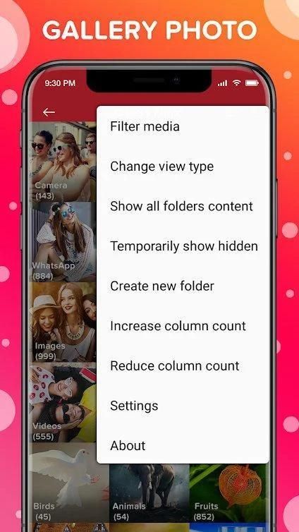 • Photo Gallery combining more beautiful theme and colorful design and with PIN lock using Hidden albums,photo,videos and also easy to hide and unhide private photo and video is best Gallery Locks&Vaults.
