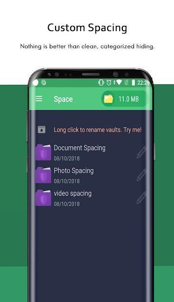 Create your own custom Custom Spacing within vide vault to keep your data nice and tidy. Nothing is better than clean, categorized hiding.