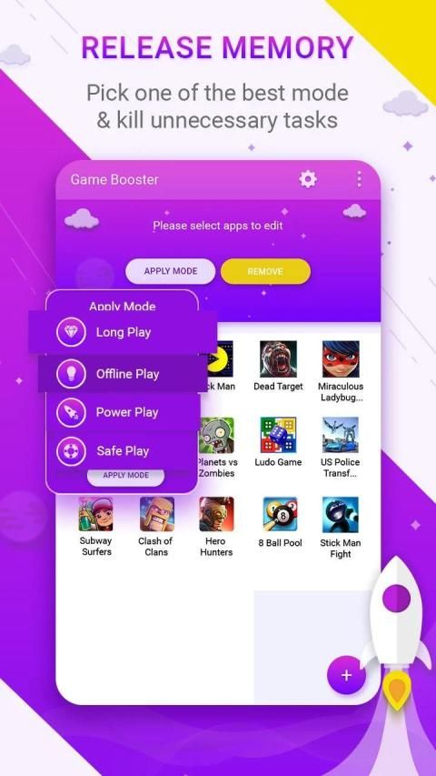 * किसी भी गेम के लिए स्मृति को स्वचालित रूप से अनुकूलित करें ताकि आप उस गेम को सर्वश्रेष्ठ गति से खेल सकें।