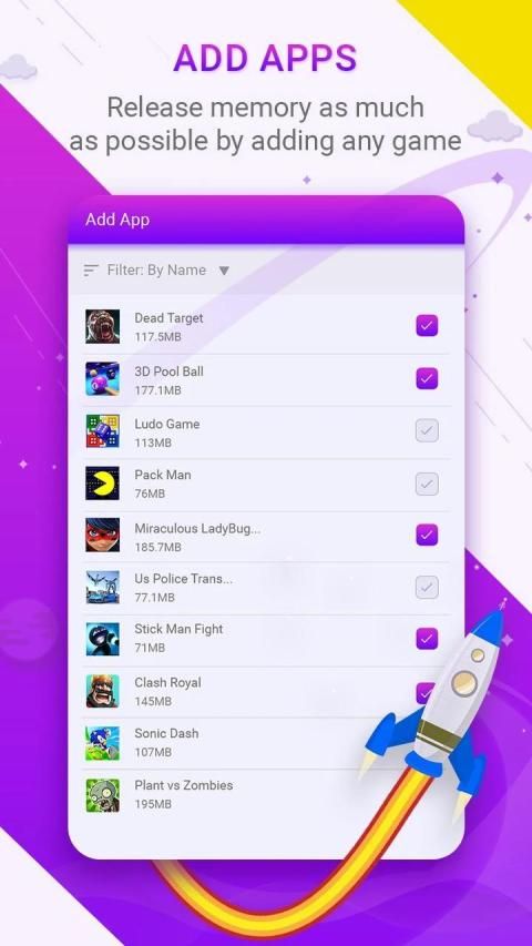 * Automatically optimize the memory for any game so you will be play that game in best speed.