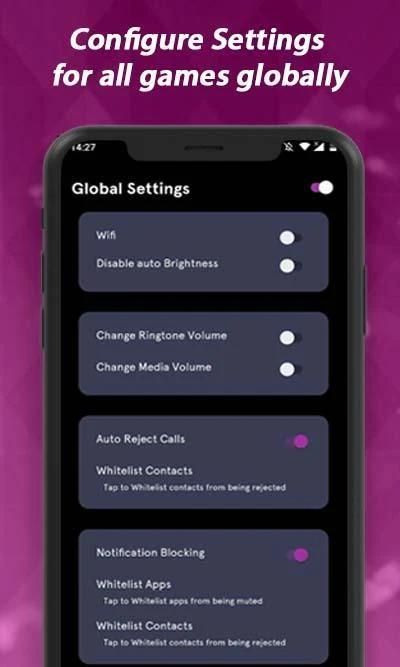 आप खेल शुरू होने पर स्वचालित रूप से लागू होने वाली विभिन्न सेटिंग्स को कॉन्फ़िगर कर सकते हैं। आप इन सेटिंग्स को ग्लोबली या प्रति गेम के आधार पर कॉन्फ़िगर कर सकते हैं। गेमिंग मोड भी आपके मौजूदा डिवाइस सेटिंग्स को याद करता है और नोटिफिकेशन पैनल से सर्विस बंद करने के बाद आपके गेमप्ले सेशन के बाद उन्हें पुनर्स्थापित करता है। अब आपको प्रत्येक गेमप्ले सेशन से पहले अपनी डिवाइस सेटिंग्स के साथ फील करने की आवश्यकता नहीं है।