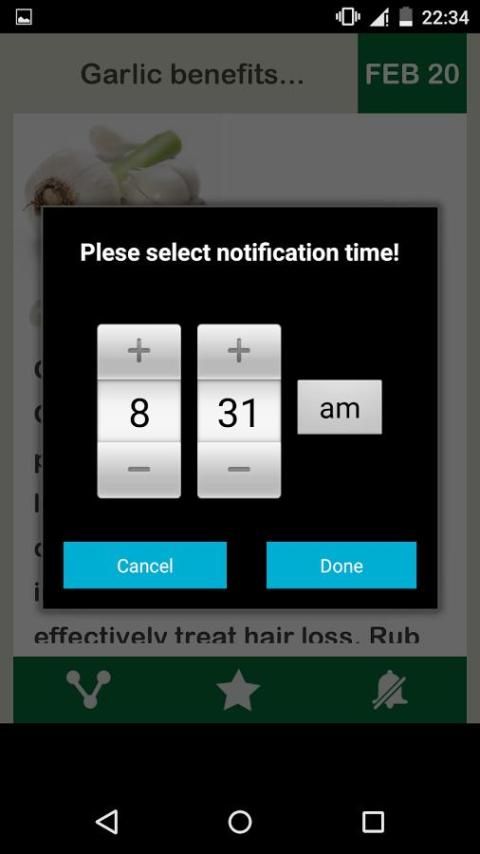 लहसुन दैनिक, आप लहसुन के दैनिक लाभ लाता है, जो एक खूबसूरत डिजाइन, चिकना सरल एप्लिकेशन डाउनलोड करें। अपने समय निर्धारित करें, और दिन के वांछित समय में अधिसूचना प्राप्त करते हैं।