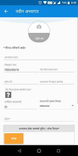* सुरक्षा को केवल आगंतुक के मोबाइल नंबर में प्रवेश करना होगा और ऐप स्वचालित रूप से आगंतुकों के डेटा को खींचता है 'विवरण और उसके/उसके अतीत की यात्रा समाज में, यदि कोई हो।यह लगातार आगंतुकों से निपटने के लिए एक हवा है
