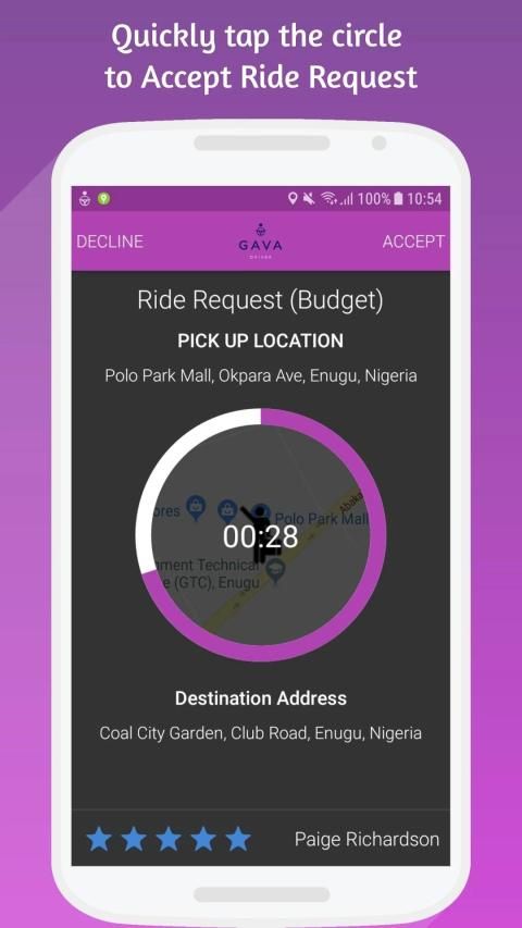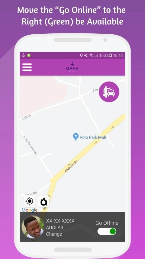 Be your own boss. Drive and smile to the bank. Signing on to make lots of money driving your own vehicle is just three easy and quick steps away, i) Download the Gava Driver App, ii) Register, iii) Slide to go online, and here comes the riders!