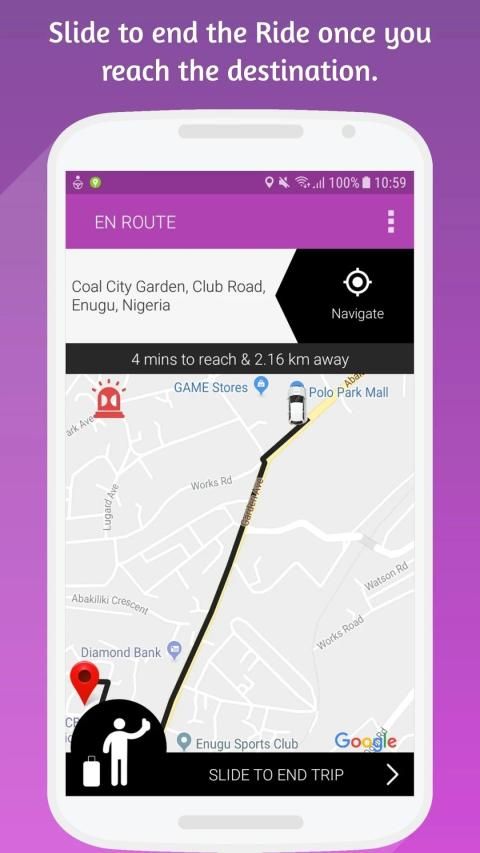 गावा कैब शहर के आसपास या दूसरे शहरों में, जहाँ भी आपकी मंजिल हो सकती है, बिना किसी परेशानी के या बिना अतिरिक्त कीमत चुकाए एक प्रभावशाली तरीका है। आप सवारी शुरू करने के लिए टैप करते हैं और गावा कैब ऐप को पहले से ही आपकी लोकेशन पता चल जाती है, जहां आप जा रहे हैं उस पर टैप करें और सवारी का अनुरोध करने के लिए टैप करें, एक समुदाय आधारित और दोस्ताना ड्राइवर आने वाले मिनटों में आपको एक चिकनी, सुरक्षित जगह पर ले जाएगा। और अपने गंतव्य के लिए त्वरित सवारी।