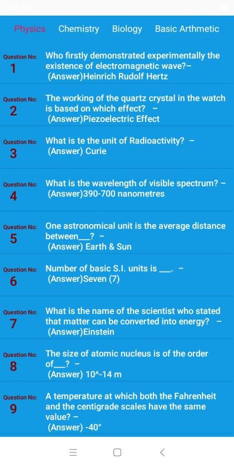 विज्ञान सामान्य ज्ञान