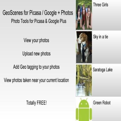 के लिए गूगल पिकासा / गूगल + तस्वीरें GeoScene अपने गूगल प्लस तस्वीरें प्रबंधन करने के लिए एक उपकरण है। अपनी तस्वीरों को, देखें तस्वीरें कि अपने वर्तमान स्थान के लिए भू टैग कर रहे हैं देखें, और नई तस्वीरें अपलोड करें।